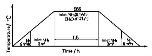 The nitrocarburizing medium of EPN is ammonia and methanol, and the process is 565℃×1.5h. The process curve is shown in the figure. After EPN is nitrocarburized, the surface hardness is >900HV and the wear resistance is high.